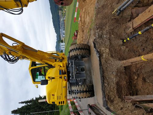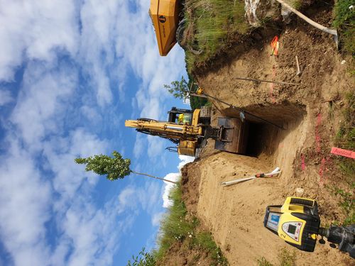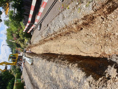 Die Sanierung des Projektes «Benzenweges» führten wir im Jahr 2020 für die Gemeinde Beringen aus. Anlass für das Projekt war die Einführung des Trennabwassersystems im Quartier Benze. Ein Teil des Projektes umfasste daher den Bau einer Meteorleitung mit 600 mm Durchmesser, welche Regenwasser ab sofort nicht mehr zur Kläranlage, sondern in die zuvor neu erstellte Sickergrube Benze, führen soll. Aufgrund der sehr engen Platzverhältnisse musste zuerst die bestehende Schmutzwasserkanalisation umgelegt werden. Den beengten Platzverhältnissen war auch der Umstand geschuldet, dass für den tiefsten Schacht eine Spriessgrube mit Leichtspundwänden, unter einer Decke bestehender Werkleitungen, erstellt werden musste.