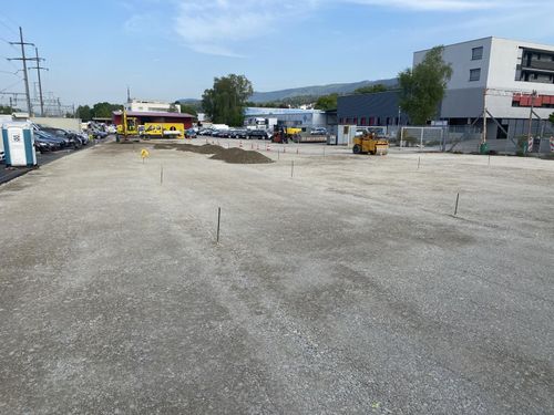 Die Platzsanierung an der Dammstrasse in Buchs ZH durften wir 2022 für die Immoclass AG durchführen. Für die Sicherstellung der Stromversorgung der Mieter verlegten wir mehrere hundert Meter EW-Leitungen, welche in Stromzapfsäulen und an der neuen Platzbeleuchtung endeten. Um den Platz bestmöglich nutzen zu können, wurde die Böschung angezogen und mit Geröllbeton und Natursteinmauern gesichert. Anschliessend wurde die Fundation ersetzt und ergänzt. Zum Schluss wurde ein einschichtiger TDS eingebaut.
