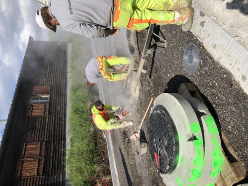 Für die Gemeinde Thayngen realisierten wir im Jahre 2021 die Sanierung der Rietstrasse, Etappe 1. Aufgrund des schlechten Zustandes der Strasse musste die Fundationsschicht ersetzt werden. Da die Normwerte auf dem Planum nicht dem SOLL-/Standardwert entsprachen, wurde das Planum abgesenkt, der Kieskoffer verstärkt und ein tragfähiges Geogewebe eingebaut. Dank einer effizienten Planung und der Nähe zu unserem Werkhof konnten wir die Arbeiten innerhalb von 4 Wochen realisieren. Dies beinhaltete die Auskofferung und den Einbau der Fundationsschicht und die Kabelschutzrohranlage für die öffentliche Beleuchtung sowie den Einbau der Randabschlüsse. Zudem das Erstellen der Planie, der Tragschicht und der Deckschicht.